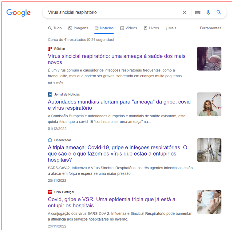 Em todo o caso, o conteúdo comercial da Sanofi publicado pelo Público em finais de Abril deste ano merece uma análise cuidada. Primeiro, surge identificada como notícia no Google News. Depois, dá largas ao necessário alarmismo, usando o título: “Vírus sincicial respiratório – uma ameaça à saúde dos mais novos”.