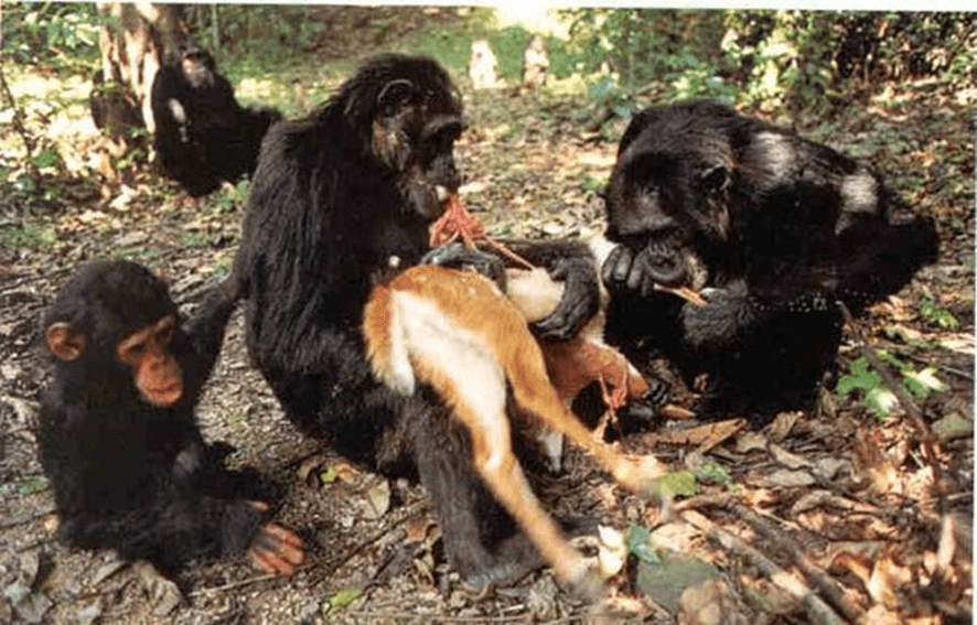 É verdade que nós, os Pan troglodytes, temos por hábito ser herbívoros. Mas isso não implica que sejamos necessariamente estúpidos. Sempre que matar não seja dispendioso em termos de energia, e não implique correr grandes riscos pessoais, a caça é uma forma perfeita de garantir quantidades substanciais de comida de alto valor proteico e de grande especial riqueza calórica. Nada que aliás vocês não saibam, ó seus humanos voyeurs que andam sempre a espiar-nos.