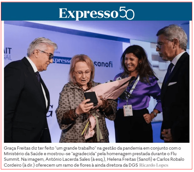 Estes eventos são sempre óptimos momentos de cortesia e lobby, como a que ficou patente na homenagem a Graça Freitas, que entre muitos sorrisos juntou Lacerda Sales, ex-secretário de Estado da Saúde e actual deputado que presidente à comissão parlamentar da TAP, e ainda Helena Freitas, directora-geral da Sanofi Portugal, e Carlos Robalo Cordeiro.