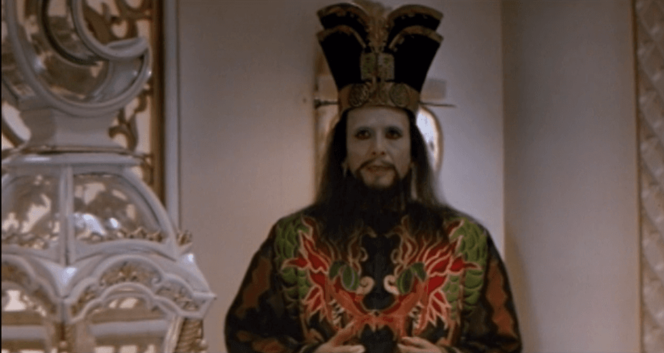 Os neons da caveira atrás da descida triunfal de Lo Pan, bem como todo o cenário, as lutas no ar e já perto do fim o palácio onde Burton consegue finalmente assumir algum heroísmo ao enfiar uma faca impossível na cara de Lo Pan, aprofundam o filme, mas também servem para criar o exagero cómico que é a tonalidade dominante de Big Trouble in Little China.