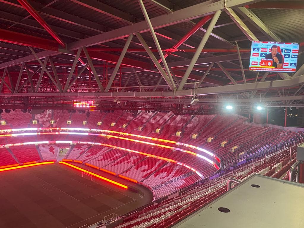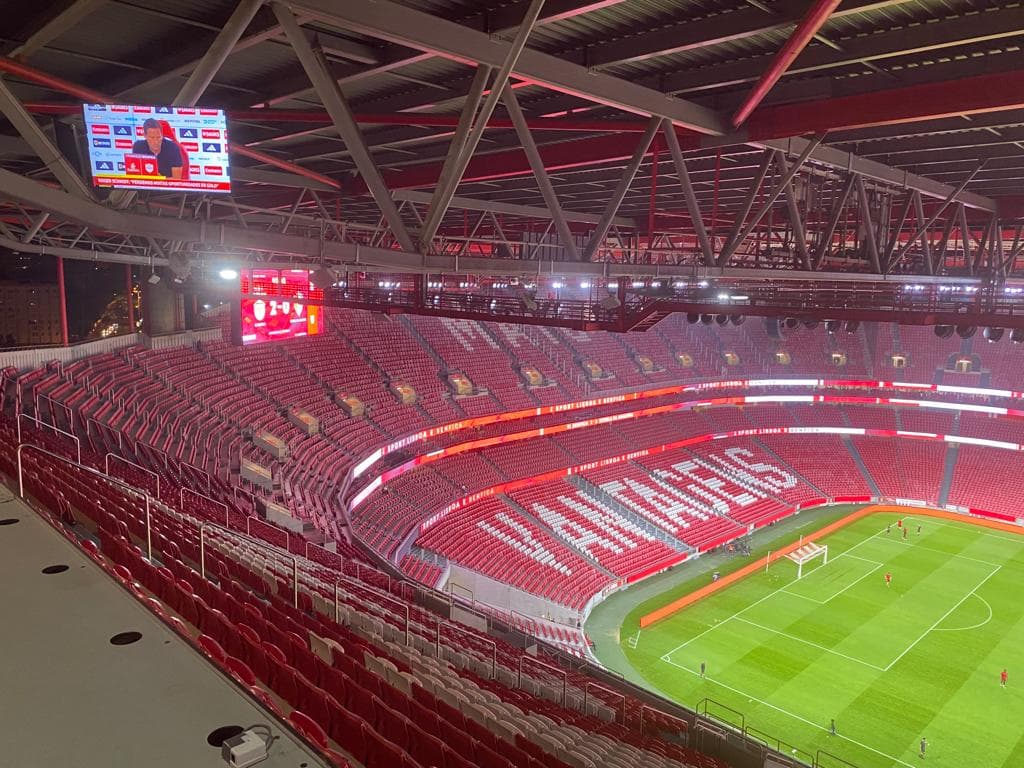 E pensar que esta tarde estive a revelar as promiscuidades do Dr. Filipe Froes e mais as suas 324 colaborações com farmacêuticas desde 2013 e os 453.635,37 euros arrecadados, fora eventuais prebendas não declaradas no Portal da Transparência do Infarmed… e eis-me aqui, agora, no Estádio da Luz, para assistir ao primeiro jogo em casa do Benfica no campeonato de futebol da época da graça de 2023 e 2024. Numa varanda com boa vista.