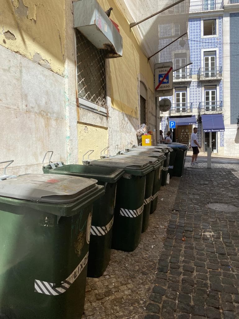 E assim, cá temos, todos têm, as ruas de Lisboa com contentores verdes.