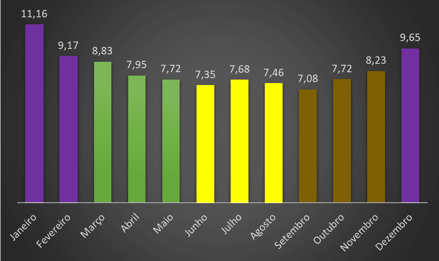De acordo com uma análise do PÁGINA UM, no período de 2013-2022 o mês de Setembro contabiliza 7,08% das mortes, seguindo-se Junho (7,35%) e Agosto (7,46%). Os piores meses são os considerados de Inverno: Janeiro (11,16%), Dezembro (9,65%) e Fevereiro (9,17%).