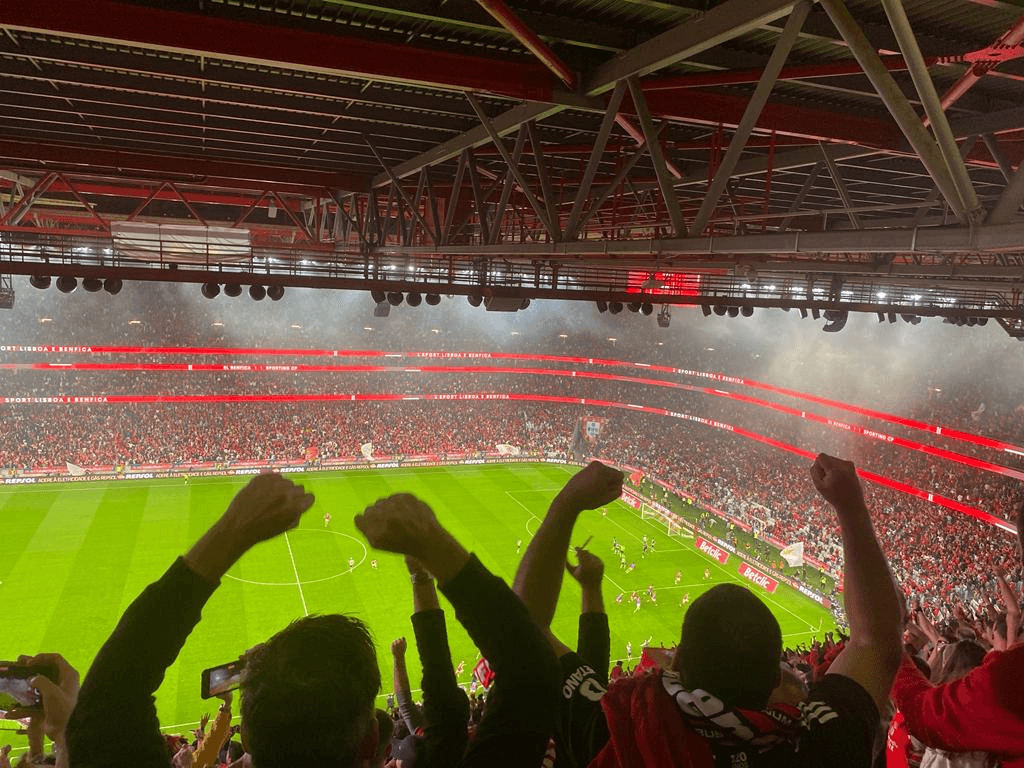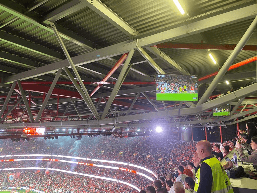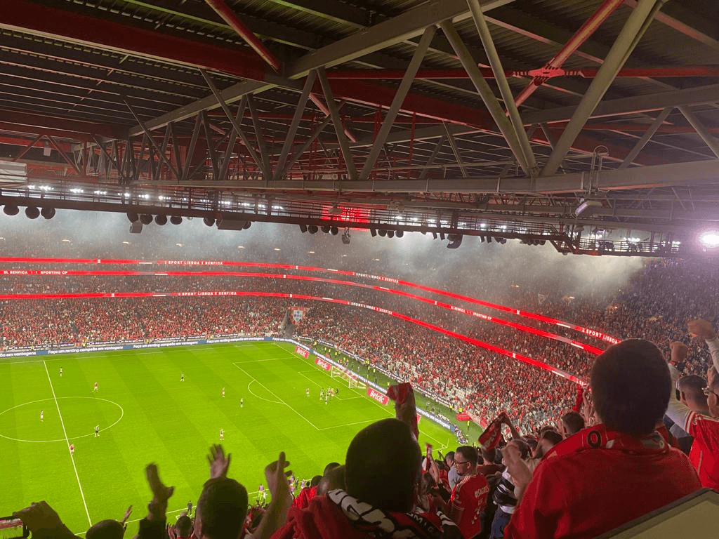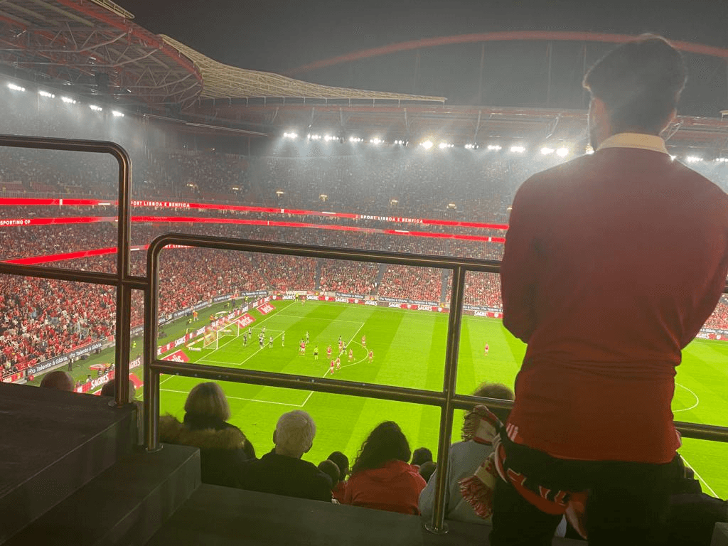 Enfim, para compor a crónica, recorro ao Tiago Franco, também aqui presente, mas na bancada defronte (BTV). Escreve ele no Facebook não ser “um génio da estatística”, mas que está “em condições de afirmar que o João Mário perdeu todas, repito todas, as bolas que disputou”, sendo assim “o principal municiador do contra-ataque lagarto. Alguma teria que entrar.” E acrescenta que “no terceiro anel, qualquer pessoa com dois olhos percebe que o jogo termina nas alas. João Mário é menos um e Di Maria, hoje, também. Florentino está reduzido a passes de cinco metros e João Neves joga sozinho contra o meio-campo do Sporting (e por incrível que pareça, chega)”.