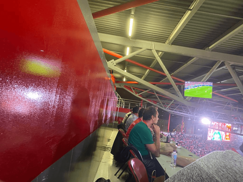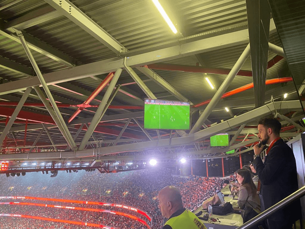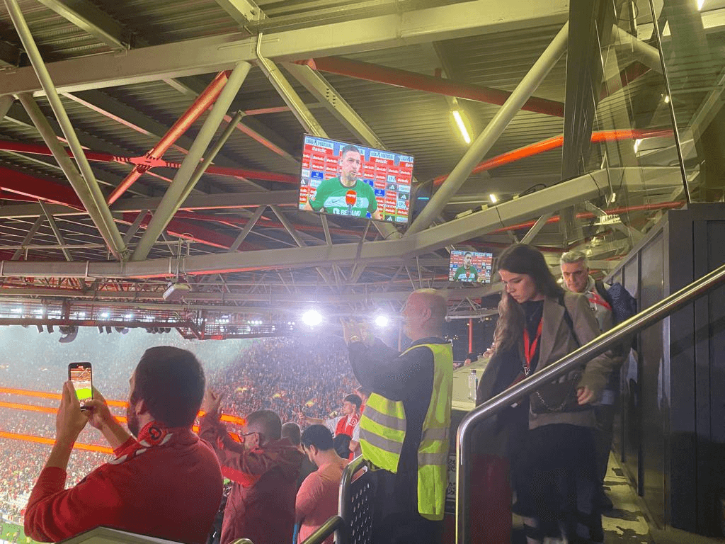 Parece que perdi outra oportunidade anterior, aos 9 minutos, mas de oportunidades perdidas é o que o Benfica mais tem feito nos últimos meses, a começar por perder quatro jogos na Champions. Enfim, mas o lance do Rafa foi antes de eu pegar a minha senha, com o número 15 – faz-me sempre lembrar a rábula do 15 a zero dos Gato Fedorento – para sacar veniaga… não! Isso é outra coisa! A senha é para sacar o tradicional lanche, o ‘clássico’ repasto daqui da Varanda da Luz, o qual diga-se ainda não conferi, porquanto assentei arraiais e comecei a adiantar serviço. E, além disso, nas três tribunas da imprensa está tudo bem composto.