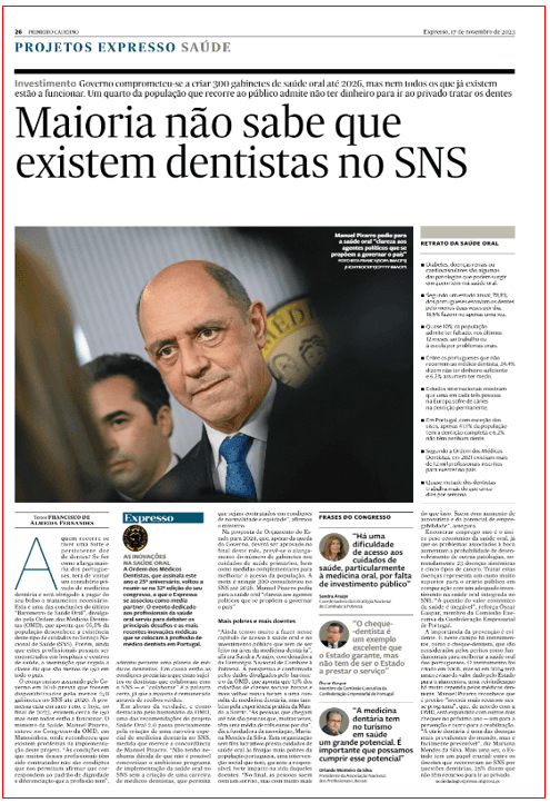 No dia 7 de Novembro, uma notícia assinada pelo jornalista Francisco de Almeida Fernandes naquele jornal dava conta das potencialidades de Portugal desenvolver o “turismo de saúde oral”, aproveitando para anunciar o congresso da Ordem dos Médicos Dentistas (OMD).