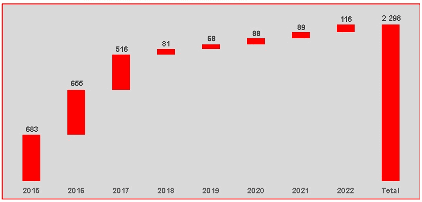 Com efeito, apesar dos montantes dos subsídios à exploração terem sido, entre 2019 e 2022, muito inferiores aos aumentos de capital entre 2015 e 2018 (334 milhões de euros vs. 1.9 mil milhões de euros), o impacte na demonstração de resultados é bastante diferente.