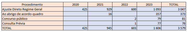 E a seguir, houve certamente horas extraordinárias nos serviços administrativos. No mês de Maio de 2023, o Hospital de Braga introduziu no Portal Base um impressionante número de contratos: 1.134, dos quais 296 referentes ao ano de 2020 e mais 664 referentes ao ano de 2021.