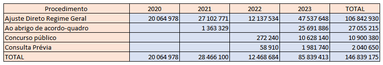 N.D. 03h00 de 21/02/2024 – Feitos diversos acrescentos, sobretudo a inclusão das ligações ao Portal Bases dos 12 contratos numerados, bem como a inclusão de um ficheiro com todos os contratos ‘atrasados’ (de 2020 e 2021 mas divulgados apenas em 2023) com valor superior a 100 mil euros.