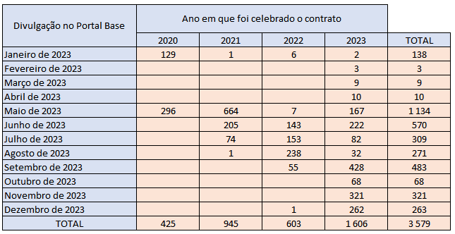 Não chegou, contudo, o mês de Maio de 2023 – com a introdução de 1.134 contratos no Portal Base – para rectificar tudo. Em Junho desse ano ainda foram metido na plataforma da contratação pública mais 205 atrasados contratos celebrados em 2021 e ainda mais 143 contratos de 2022, que também estavam em violação do Código dos Contratos Públicos.