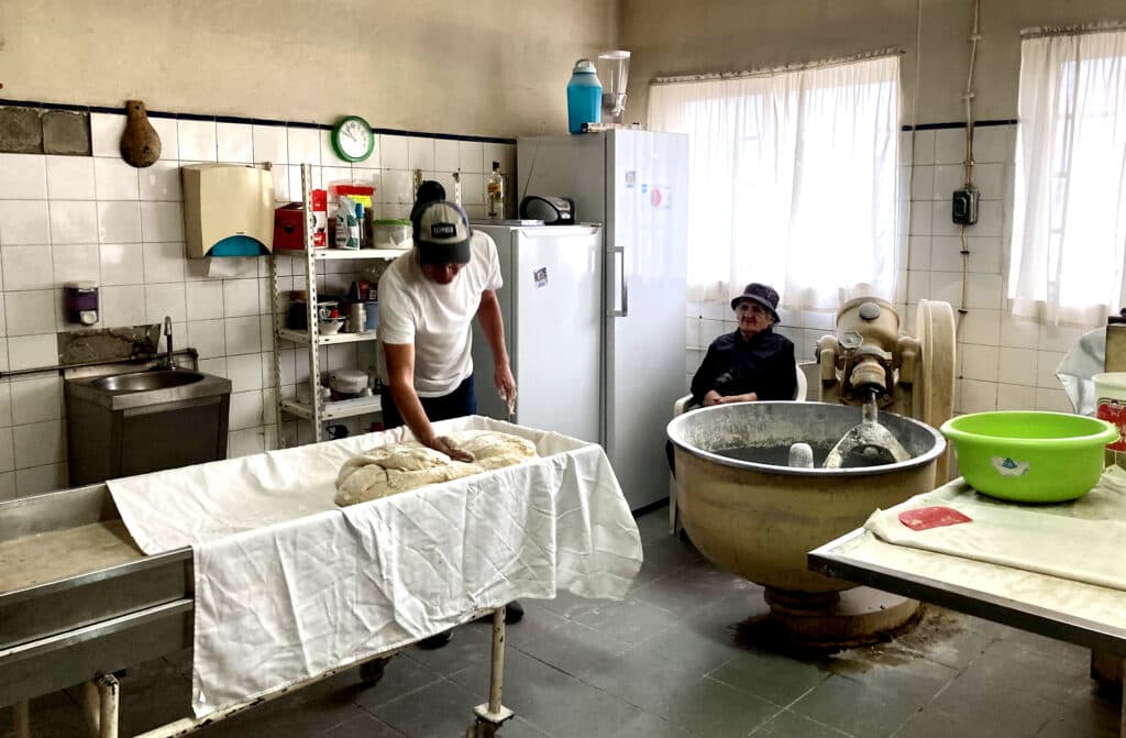 A padaria está fechada, mas lá dentro damos com Sérgio Pereira a amassar o pão.