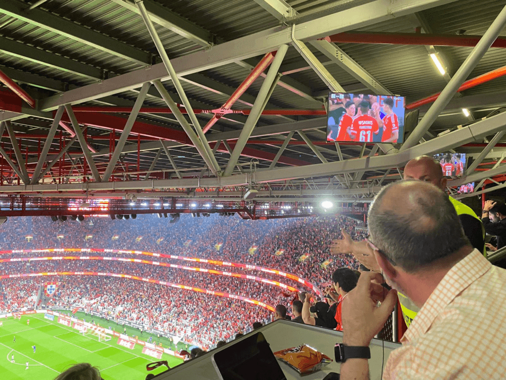 Estou assim, confesso-vos, tão entusiasmado esta noite quantos as dezenas de milhares de adeptos benfiquistas que deixaram, ali em baixo, excelentes cadeiras vazias em plena bancada central mesmo no enfiamento da linha do meio-campo.
