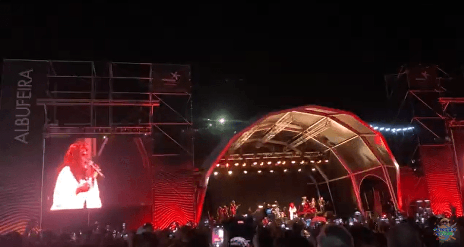 Entusiasmei-me. Não é todos os dias que vemos em carne e osso alguém cujas canções nos acompanham desde que nos lembramos de ser gente. A caminho da Praia do Pescadores, as ruas eram ribeiras de gente que escorria feliz em direção à diva. Lá em baixo, milhares de turistas esperavam pacientemente. Cantava-se. Conferiam-se conhecimentos ⎼ Lembras-te desta ….? E daquela …? – Para a maioria seria a primeira e a última oportunidade de ver a grande estrela da Disco ao vivo.