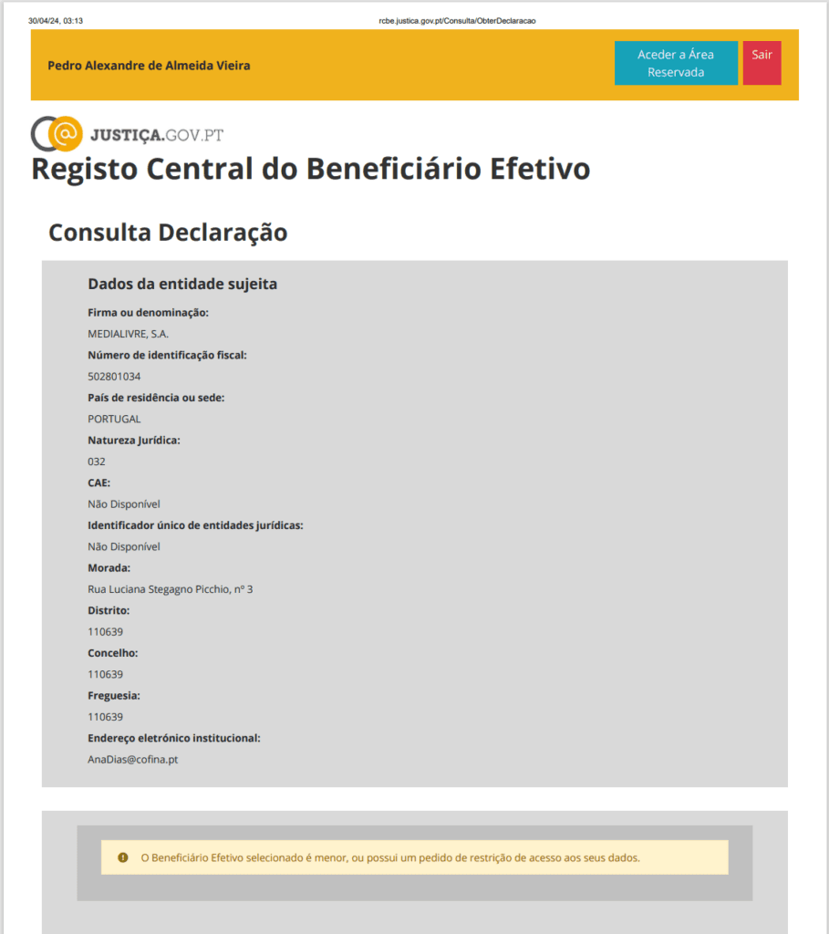 Diversas empresas com investimentos de Cristiano Ronaldo, incluindo a Medialivre, no sector da comunicação social, estão a sair favorecidas por um polémico regime de excepção para não cumprir as regras de prevenção do branqueamento de capitais e de financiamento do terrorismo. No Registo Central do Beneficiário Efectivo – uma base de dados pública –, em nenhuma das suas empresas, incluindo na Medialivre – onde deterá um capital de 30% –, o mais celebrado futebolista português surge identificado. Invariavelmente, com duas únicas excepções, consultando as diversas empresas onde publicamente se sabe que existem capitais relevantes do jogador do Al-Nassr surge a informação: “O Beneficiário Efetivo seleccionado é menor, ou possui um pedido de restrição de acesso aos seus dados”. Essa restrição favorece outros eventuais beneficiários efectivos nessas empresas, ou seja, sócios de Cristiano Ronaldo.