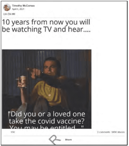 Por sua vez, na secção ‘Facebook Files’, é demonstrado que, em Fevereiro de 2021, a maior rede social do Mundo aumentou a censura de conteúdos considerados ‘anti-vacina’, bem como as alegações sobre fuga laboratorial como estando na origem da pandemia causada pelo SARS-CoV-2, devido a “conversas tensas com a nova Administração [Biden]” e como parte de um esforço para responder a exigências da Casa Branca para “fazer mais” no combate a alegada desinformação.