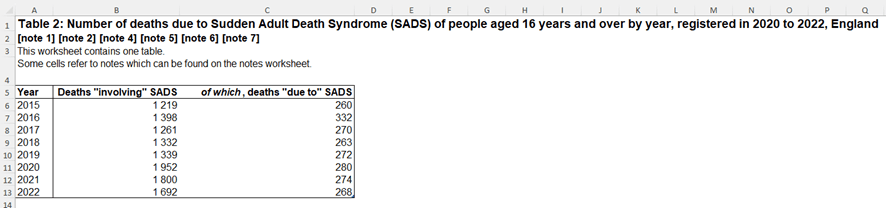 Aliás, bem exemplificativo disso é o facto de o Dr. Filipe Froes mentir – ou, em alternativa, no caso de mera ignorância, faltará à verdade –, quando disserta sobre as mortes súbitas no Reino Unido. Escreve ele na queixa, depois de apresentar supostos dados, que “só os casos de morte súbita que ocorreram naturalmente num único país, neste caso o Reino Unido, e sem relação com a vacina podem justificar a maioria dos casos referidos na peça jornalística”. Ora, conforme se pode constatar no Office for National Statistics na rubrica Deaths “involving” or “due to” Sudden Infant Death Syndrome and Sudden Adult Death Syndrome, existe um ficheiro onde consta a evolução entre 2015 e 2022 “envolvendo” (involving) e “devido a” (due to) síndrome da morte súbita (FICHEIRO 1).