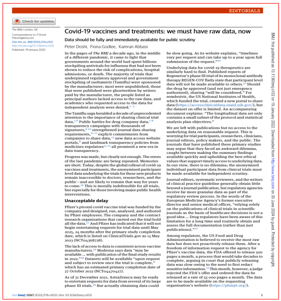 Não se está a insinuar: era (e é) a pura verdade: existe uma falta de empenho e falta de transparência dos Governos quanto aos efeitos adversos das vacinas contra a covid-19. Aliás, já em Janeiro de 2022, os editores do The BMJ – um dos grupos editoriais de revistas científicas – relatavam, a falta de dados em bruto sobre as vacinas contra a covid-19 (FICHEIRO 11).