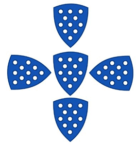 [29]Por sua vez, A Crónica Geral de Espanha, adaptada por D. Pedro, conde de Barcelos, em 1344 (para cuja revisitação crítica, cfr. Maria do Rosário Ferreira/Maria Joana Gomes/Filipe Alves Moreira, «A Crónica de 1344 e a historiografia pós-alfonsina», in e-Spania [on-line], n.º 25, Outubro de 2016, disponível aqui), narra assim o episódio: «E depois da lide, mudou os sinais das suas bandeiras. Porque antes da lide, trazia as armas brancas como seu padre e, depois da lide, pôs no seu pendão cinco escudos azuis por memória dos cinco reis que vencera, e pô-los em cruz, por lembrança da cruz em que Nosso Senhor Jesus Cristo teve as espáduas».