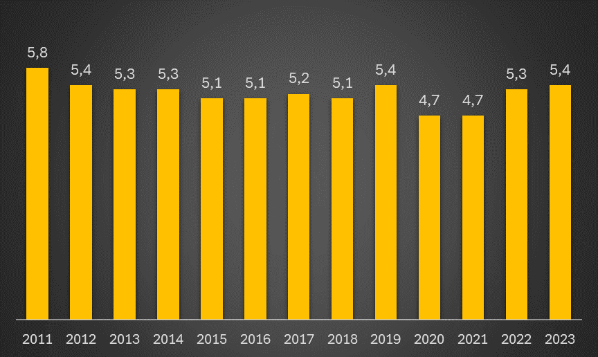 Com a taxa média registada em 2023, significa que em Portugal, para uma população estimada de 10,6 milhões de habitantes, os crimes contra a integridade física terão rondado os 57 mil durante todo o ano passado, ou seja, cerca de 156 crimes desta tipologia por dia. O INE não discrimina as subcategorias destes crimes.