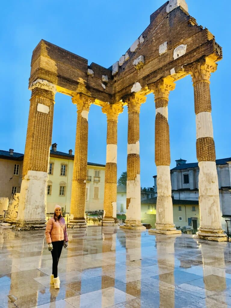 Mas a história de Bréscia não termina aqui, pois remonta ao período pré-românico, com as ruínas de Brixia, o nome romano da cidade. Esta área arqueológica, a mais bem preservada do norte de Itália, reúne na Piazza del Foro e Capitolino, as estátuas de Juno, Júpiter e Minerva, um teatro romano e um santuário de século I com frescos e pavimentos do século II antes de Cristo, muito bem preservados. A joia da coroa é o Castelo Alto de onde conseguimos ter uma perspectiva fantástica da cidade.