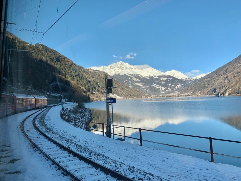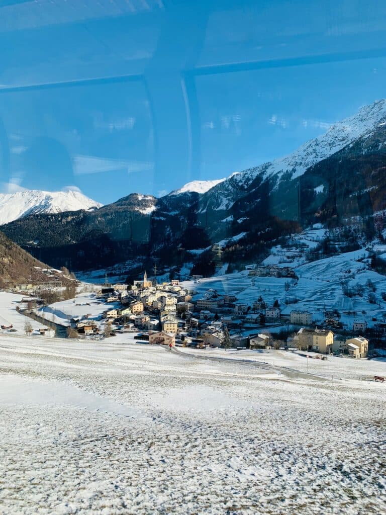 Viajar de comboio é algo que se entranha, são viagens que não esquecemos, que prolongam as memórias, e esta, em particular, é quase mágica. Passámos por aldeias alpinas pintadas de branco, que contrastavam com um intenso azul do céu e as escuras colinas mais escarpadas. Garantidamente, uma das viagens de comboio mais deslumbrantes que se podem fazer.