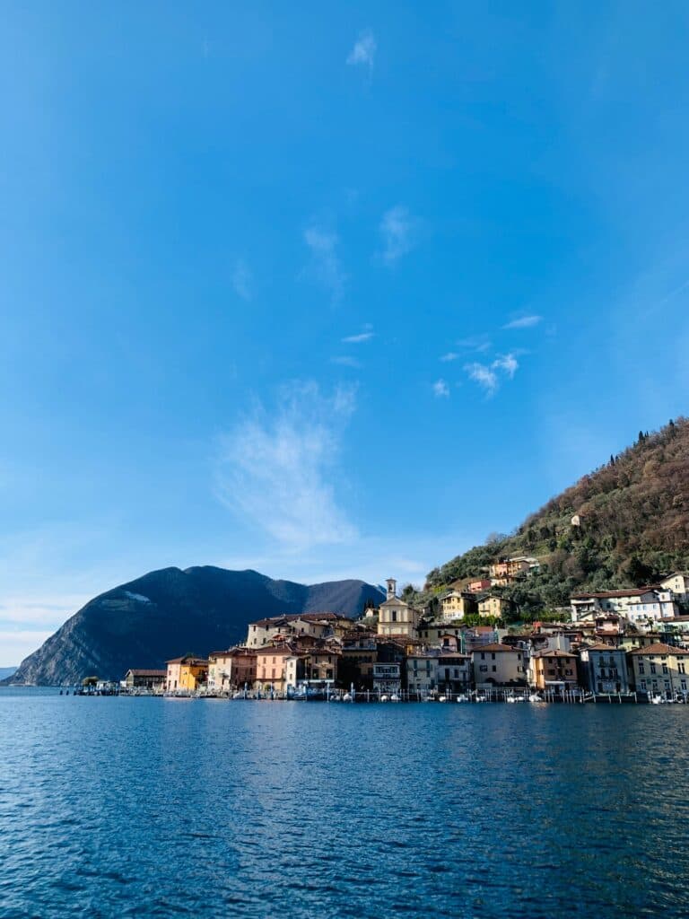Chegando ao porto de Sulzano, apanhámos então o barco, que faz a viagem de 20 em 20 minutos. Monte Isola tem sido considerada uma das belas cidades europeia. Ainda que seja pequena, é a maior ilha lacustre da Europa, a pérola do lago Iseo. Aqui não existem automóveis para alugar, pelo que a melhor opção passa por alugar uma bicicleta ou seguir a pé. Em todo o caso, o santuário no topo da ilha só faz sentido se se visitar de autocarro.