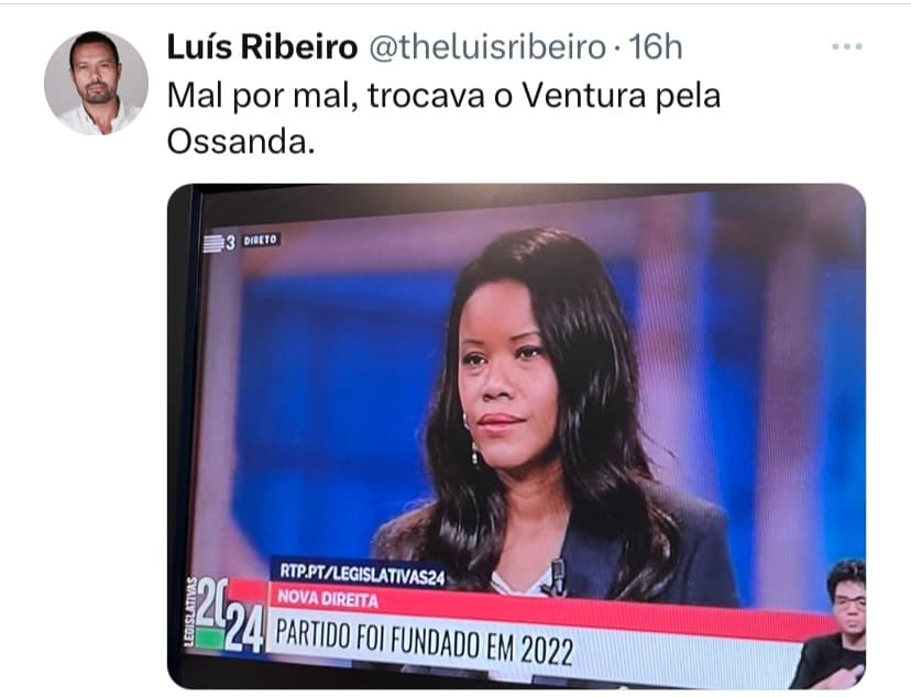 Aquilo serve para, como nas feiras, se mandar uns tirinhos nos bonecos. Sobretudo se se é jornalista. E sobretudo se se é um jornalista do quilate do Luís Ribeiro, que já foi apontado pela Entidade Reguladora para a Comunicação Social de ser um ‘jornalista comercial’ por fazer trabalhos de prestação de serviços a empresas externas (parceiros) numa revista (Visão) que integra uma empresa unipessoal de 10 mil euros que tem 10 milhões de euros de dívida ao Estado. Divertiu-se muito ontem, o Ribeiro, em enxurrada de bocas no X. Hoje, divirto-me.
