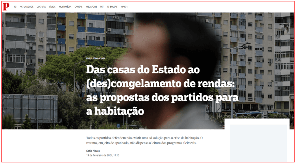 Assim, está a jornalista Sofia Neves, hoje no Público, a ser rigorosíssima quando nos garante que “todOs os partidos defendem não existir uma só solução para a crise da habitação”, e depois acaba a listar somente as propostas da Aliança Democrática (PSD, CDS e PPM), Bloco de Esquerda, Chega, Iniciativa Liberal, Livre, PAN, Partido Comunista Português (sem PEV, apesar de coligados) e Partido Socialista.