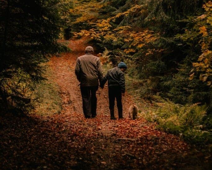 Com movimentos delicados, o avô ajudou o neto a espichar-se por cima do chão úmido.