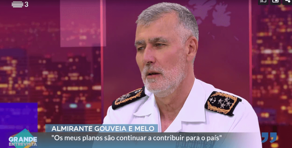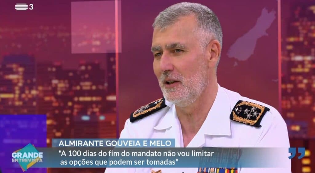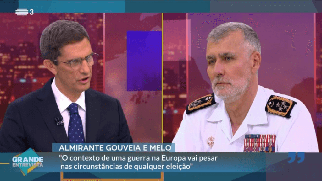 Nesta entrevista, Gouveia e Melo nunca recusou vir a ser candidato, mas foi sempre alimentando um tabu cada vez menos escondido, salientando que avançaria se sentisse que a sua “candidatura à Presidência seria útil ao país”. O actual chefe do Estado-Maior da Armada criticou também aqueles que o tentavam condicionar. Questionado sobre se o actual contexto de incerteza e guerras poderia favorecer um candidato militar, o almirante, estando fardado, respondeu: “sem me pôr no meu papel militar, no meu papel de Gouveia e Melo, falando como uma pessoa normal, como cidadão, acho que os contextos influenciam muito as situações; este contexto de uma guerra e incerteza geoestratégica e de alguma violência, […] de certeza que vai pesar nas circunstâncias futuras em quaisquer eleições”. Gouveia e Melo disse ainda que “o último militar na Presidência foi Ramalho Eanes, a quem a população tem de estar agradecida”. ↓