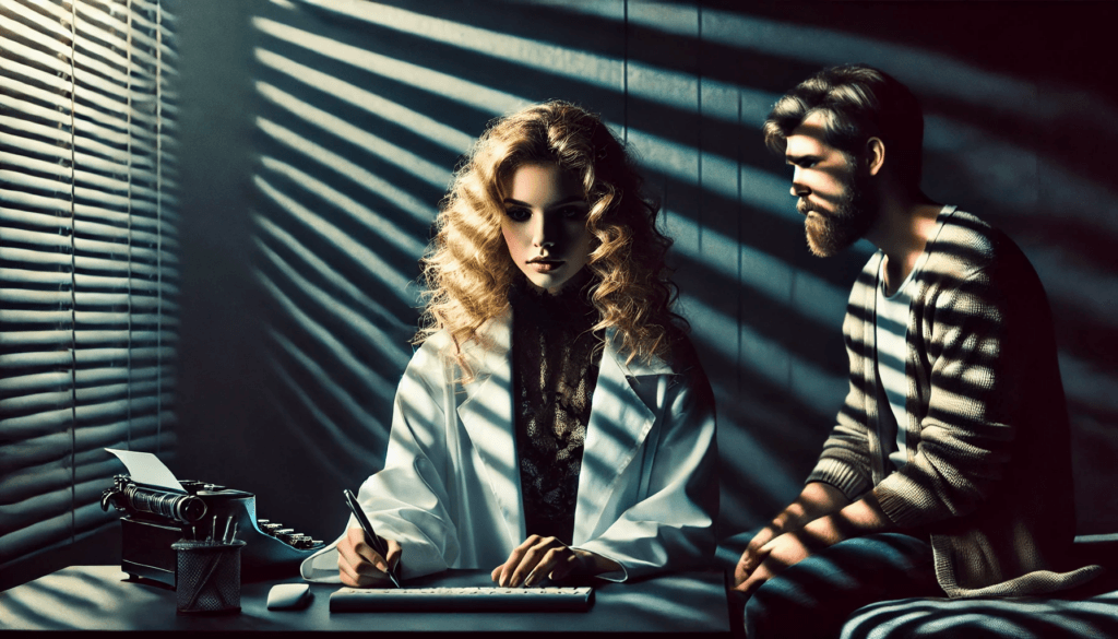 Depois de anotar aquela resposta, a psiquiatra voltou seus inquisidores olhos azuis para os negros olhos sonhadores do homem.