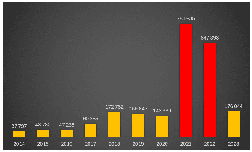 No ano seguinte (2022), ainda com uma taxa de vacinação elevada, por via dos ‘boosters’, os relatórios de reacções adversas de todos os fármacos continuaram extremamente elevados (647.393), apesar de uma ligeira descida. No ano passado, por via de uma redução substancial da vacinação, as notificações desceram para níveis próximos, embora superiores, aos registados antes da introdução das vacinas contra a covid-19.