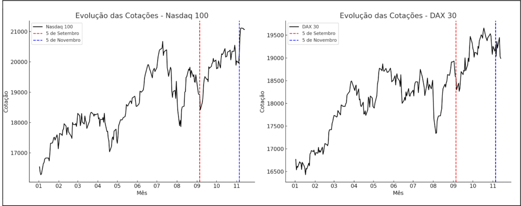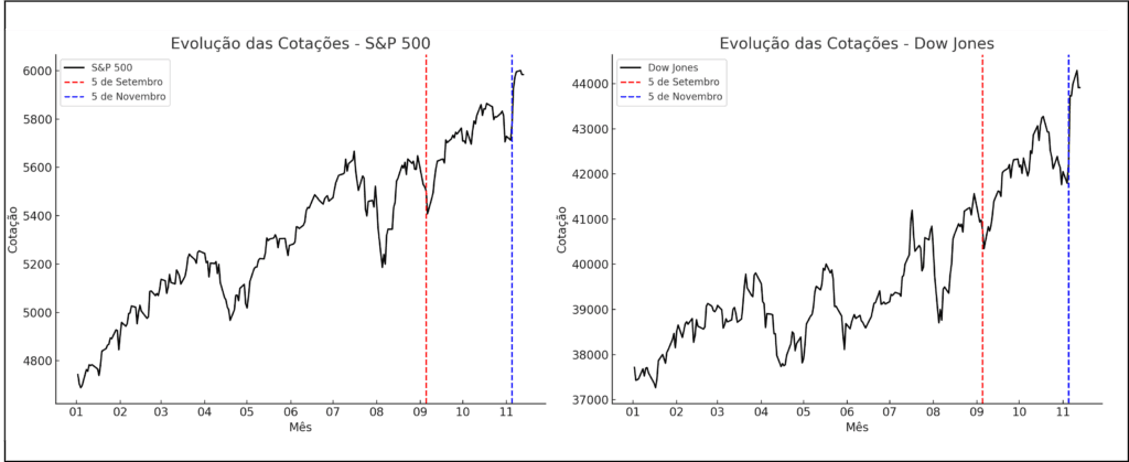 Ao contrário do que sucede cada vez mais nos media, em que jornais e jornalistas adoptam uma posição de activistas, neste caso de apoio a Kamala Harris e ao Partido Democrata, nos mercados de capitais os factos é que contam. Analistas financeiros destacam a “vitória esmagadora” dos republicanos que deixa a porta aberta para a prometida descida de impostos para empresas nos Estados Unidos. Os mercados também antecipam a perspectiva de se estar mais perto do fim de alguns conflitos armados, além de se preverem melhores expectativas para a economia. Tudo isto levou os índices norte-americanos para novos máximos históricos e gerou valorizações em diversos sectores de actividade e classes de activos.