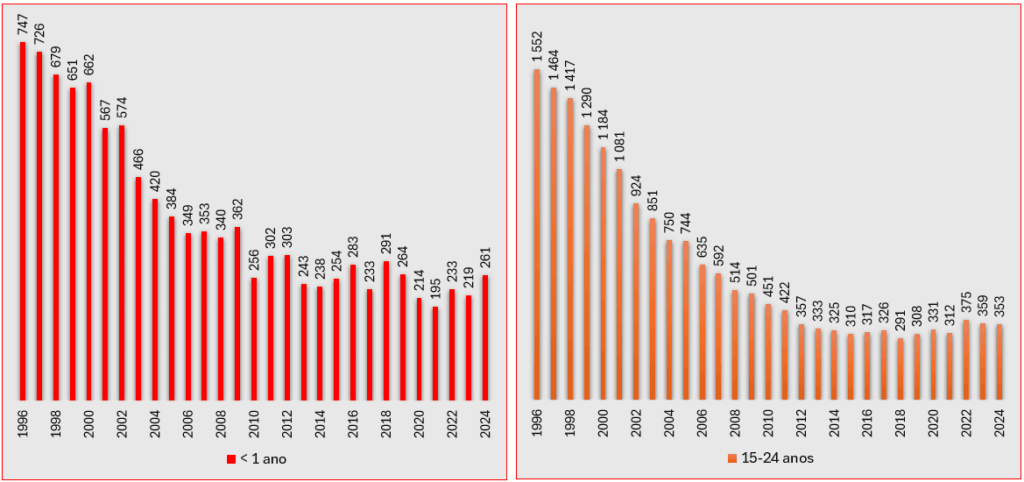 Há uma década assistia-se então a uma evolução verdadeiramente positiva nas taxas de sobrevivência da população jovem, fruto sobretudo dos cuidados médicos. De facto, no presente século, a mortalidade neste grupo etário foi descendo de forma consistente e bem visível pela Estatística. Por exemplo, em 1996 ainda morreram 1556 adolescentes e jovens adultos; em 2022 conseguiu-se pela primeira vez baixar a fasquia dos mil óbitos (924) e a evolução positiva não ficou por aí.