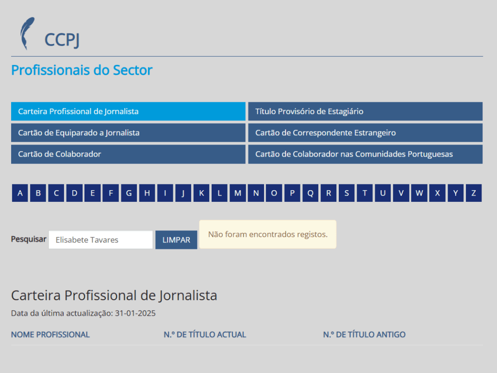 A pretexto de um não-facto remoto – a moderação de um só debate sobre mercados agrícolas em 2022, de não tem qualquer carácter comercial nem de promoção, onde até estiveram mais duas jornalistas (Público e Mundo Rural) –, a CCPJ decidiu, de forma inédita e injustificável, não renovar do título profissional de Elisabete Tavares, pelo que a sua carteira se encontra caducada e colocando-a numa situação de irregularidade e constrangendo directamente a actividade do PÁGINA UM. Note-se que as duas outras jornalistas mantêm as suas carteiras profissionais válidas. ↓