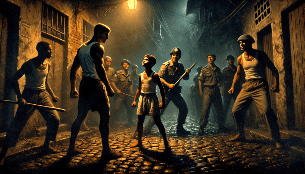 Uma vez, anoitecendo, uns brigadas nos cercaram quando a gente vinha voltando pelo canalete. E, sem conversa, baixaram a borracha no nosso lombo. O Negãozinho foi o que tomou mais pau, mas não chorou. Um brigadiano disse: