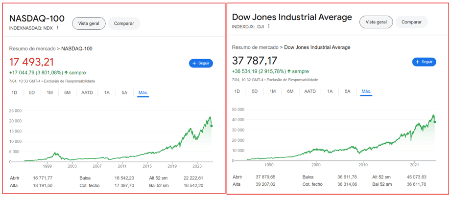 Gráficos com a evolução dos principais índices bolsistas norte-americanos, europeu e português: