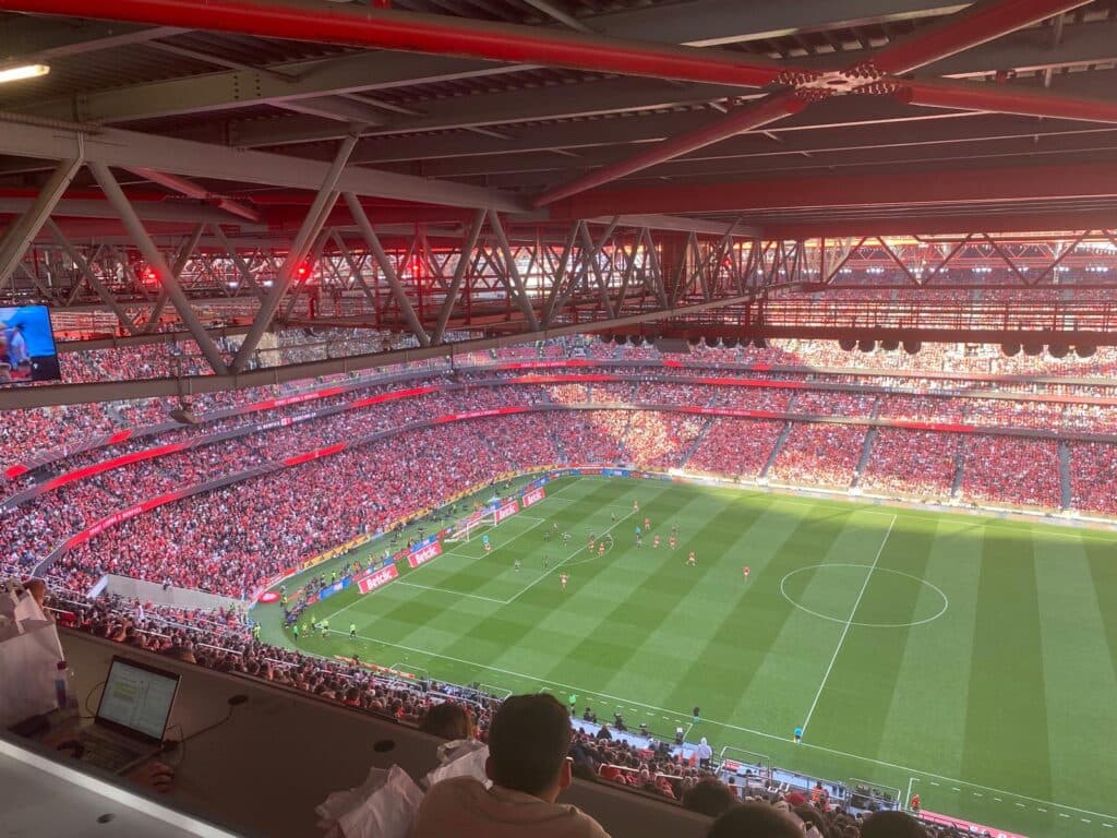 Enfim, a menos de uma hora do jogo do título e nós, dois homens feitos, jornalistas prevenidos, encontrávamo-nos a mendigar mobilidade. Valeu-nos o Uber, esse milagre pago a peso de ouro, malgrado a espera. Fomos levados pelo Malkit, classificação de 4,91 em 5, num Renault com uma curiosa matrícula iniciada por AD. Vinte minutos de jogo foram perdidos. Um pecado em dia de epifania futebolística. ↓