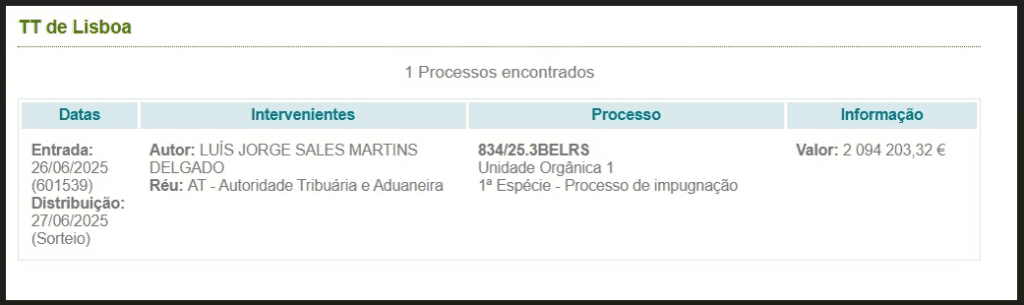 Ontem, segundo apurou o PÁGINA UM, Delgado avançou uma acção de oposição junto do Tribunal Administrativo e Fiscal de Sintra para tentar travar uma nova acção de execução referente a uma dívida fiscal de 2.285.093 euros da TIN.