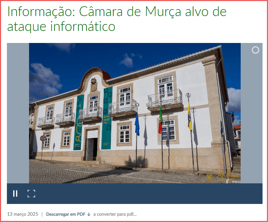 Por exemplo, em Novembro do ano passado foram públicos os casos de ataques informáticos maliciosos às câmaras municipais de Chaves, Nelas e Alcobaça. Este ano, a 13 de Março, a Câmara de Murça sofreu também um ciberataque.