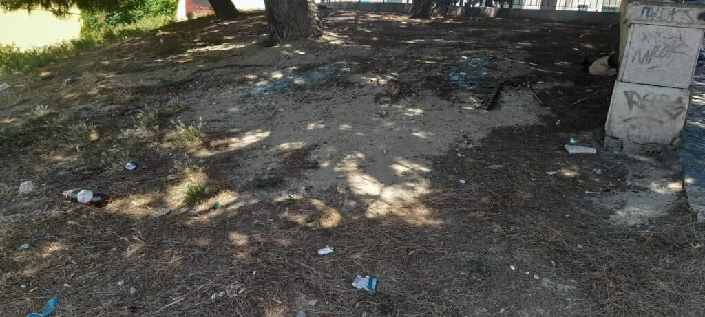 Não há no jardim nenhuma zona que escape à degradação. Mesmo o ‘parque de areia’ para as crianças brincarem está impróprio para uso. Vários objectos, como isqueiros, e lixos diversos, sobretudo beatas, estão misturados com a areia.