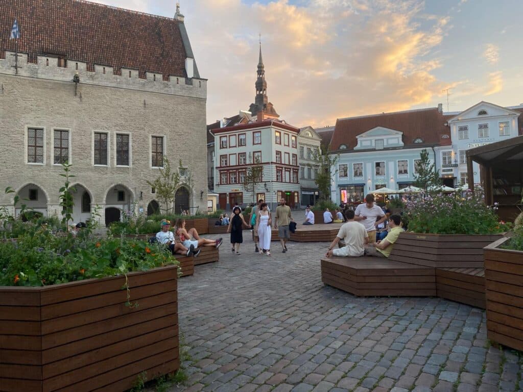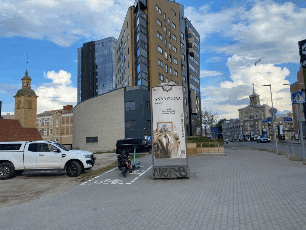 “Na segunda imagem vê-se ainda: à direita, o cruzamento de Liivalaia com Pärnu maantee; ao fundo, o edifício da antiga Baltika Quarter (ligado à moda); e ao centro, um cartaz publicitário de teatro em estónio. Se estiveres a explorar Tallinn, estás muito próximo do centro moderno da cidade, e a menos de 10 minutos a pé da Viru Väljak (Praça Viru) e do início da Cidade Velha. Se quiseres sugestões nesta zona — históricas, culturais ou gastronómicas —, posso recomendar-te várias. Queres?”