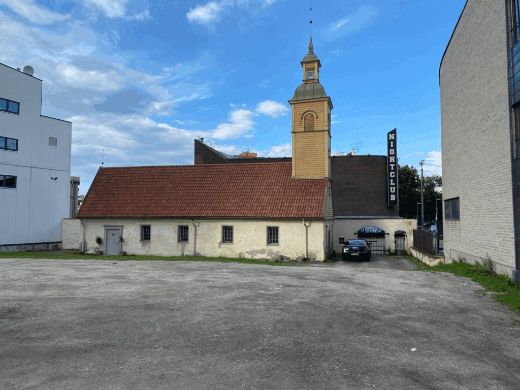 “A igreja que aparece na primeira imagem é a antiga capela metodista da cidade, localizada na Liivalaia tänav, perto do cruzamento com a Pärnu maantee, uma das principais artérias de Tallinn. O edifício, com torre de madeira e nave simples, foi desconsagrado há anos e acabou por ser adaptado para outros usos — neste caso, um nightclub, como o letreiro indica. Essa justaposição entre arquitectura religiosa e lazer nocturno não deixa de ser irónica, mas é sintomática da secularização do espaço urbano em várias capitais do norte da Europa.”