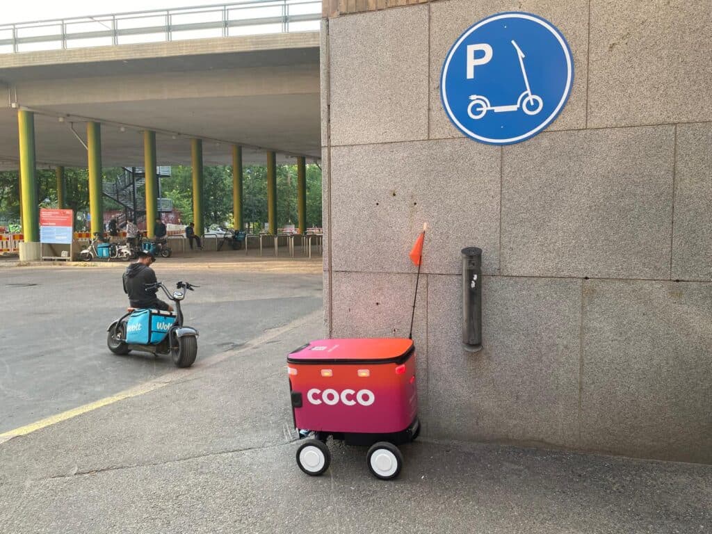 Resignado, voltei para trás, e eis que não bato, porque ele se desviou, num entregador de comida robótico: uma pequena caixa sobre rodas, bandeira a com luzes e sensores, que seguia o seu caminho pelas ruas com a determinação de um carteiro que jurara entregar a correspondência nem que chovesse granizo.