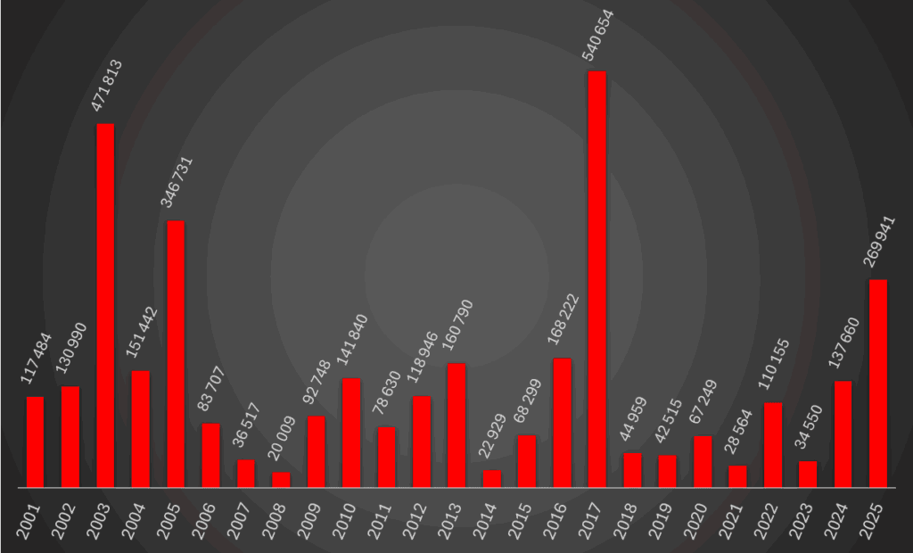 2025 É O QUARTO PIOR ANO DE SEMPRE EM ÁREA ARDIDA