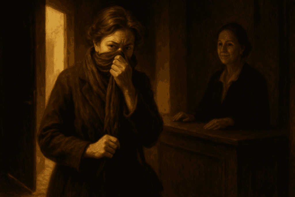 Cobriu rapidamente a boca e o nariz com a écharpe. Apressou-se em direção à luz do dia. Já no exterior, baixou o lenço, esperou alguns segundos e respirou fundo. Resistira à tentação de terminar a frase. Estava a salvo!